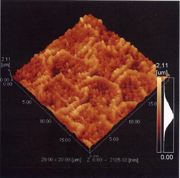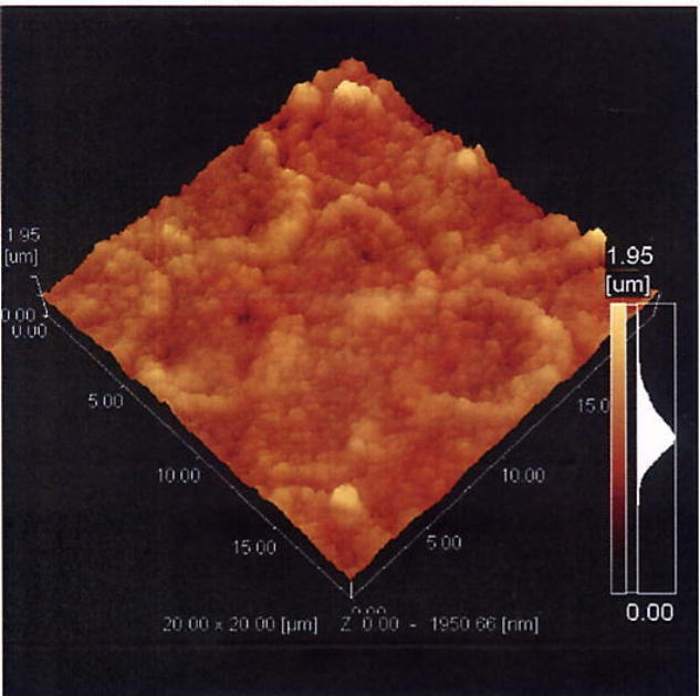 HAp粉末を、pH約2.3の非塩素系強酸性水に溶解させた。この溶液中にプラズマ処理したポリ乳酸板を浸漬して、ポリ乳酸表面へのHApの固定状態を、操作プローブ顕微鏡を用いて検討した。
